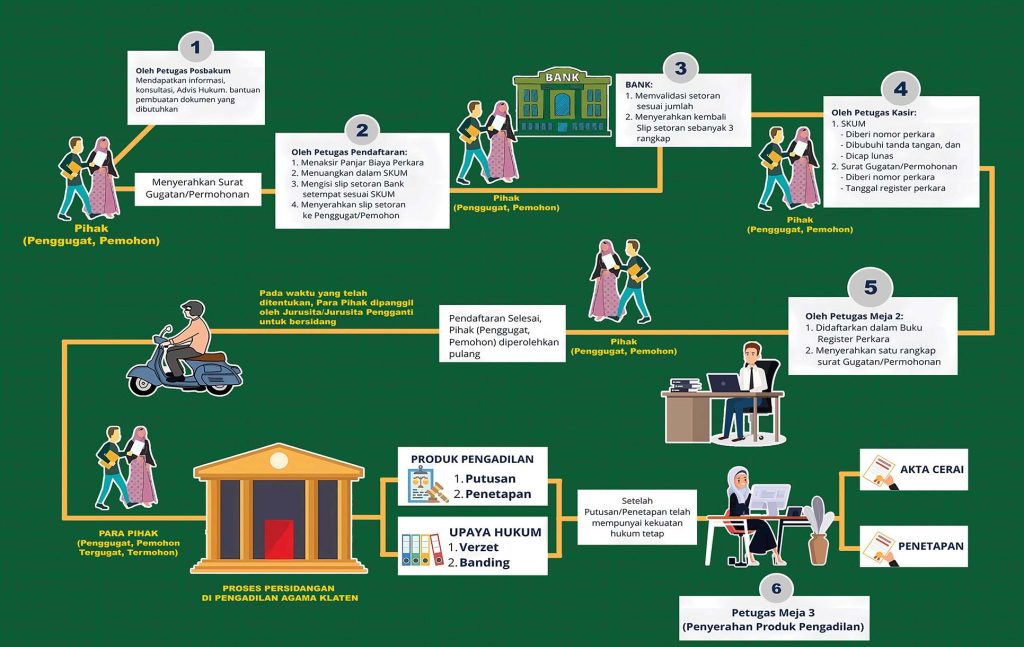 E-Court (Pendaftaran Perkara Online): Daftar perkara, pembayaran biaya panjar (e-Skum), hingga persidangan secara elektronik tanpa harus datang berulang kali ke kantor.