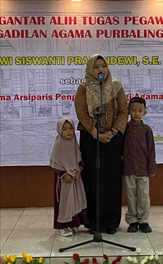 Bertempat di ruang Media Center, berdasarkan surat undangan Ketua Pengadilan Agama Purbalingga nomor : 2670/ KPA.W11-A23/ KP4.1.3/ XI/2023 tanggal 27 November 2023 seluruh Aparatur Pengadilan Agama Purbalingga menghadiri pengantar alih tugas pegawai Pengadilan Agama Purbalingga, Dwi Siswanti Prabandewi, S.E. sebagai Ahli Pratama Arsiparis Pengadilan Tinggi Agama Kupang pada Senin (27/11) pukul 13.30 WIB.