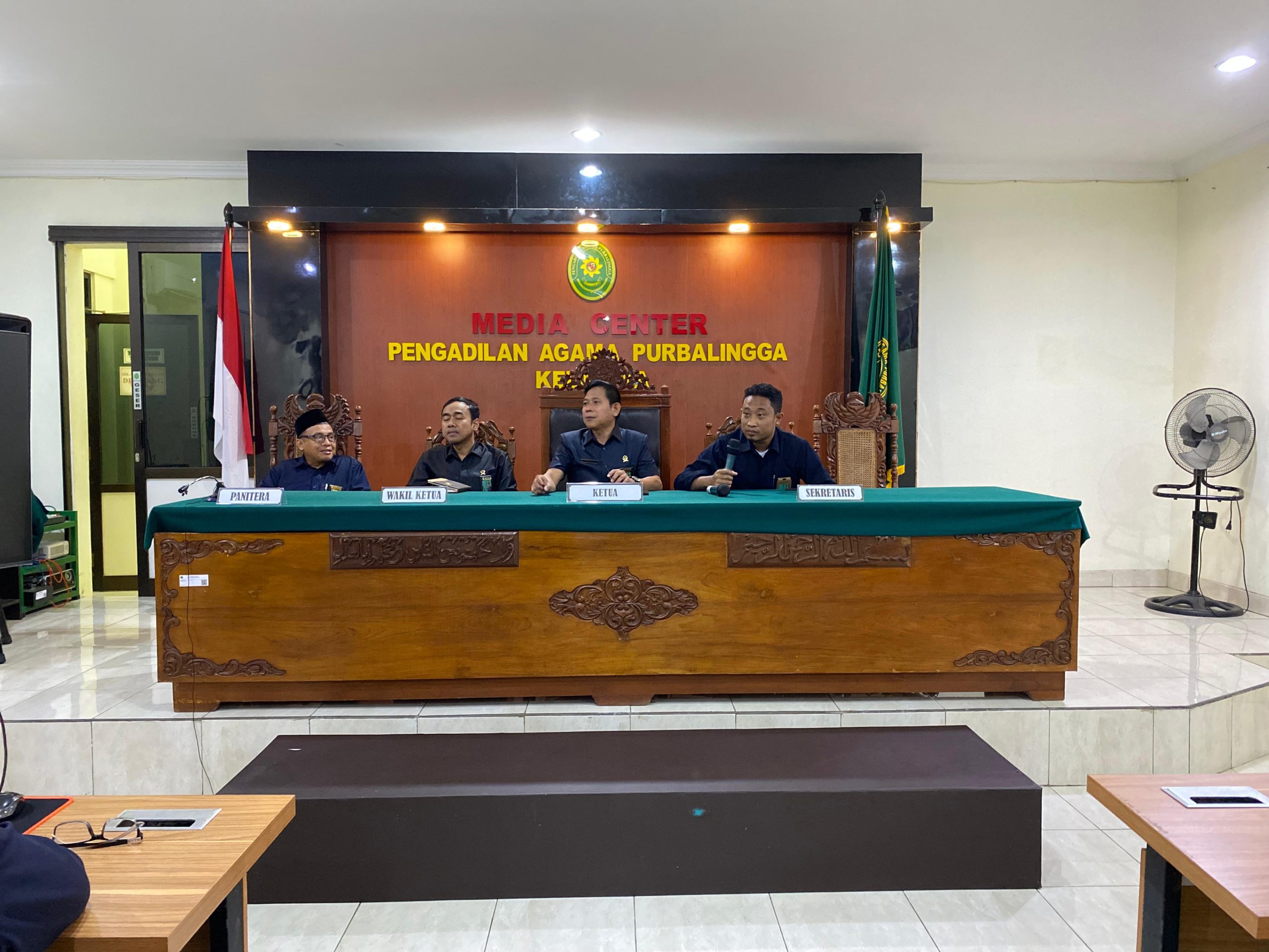 Pada Rabu 08/01 pukul 14.00 WIB, bertempat di Media Center telah dilaksanakan kegiatan rapat koordinasi internal Pengadilan Agama Purbalingga. Kegiatan ini dipimpin oleh Ketua Pengadilan Agama Purbalingga Bapak Alwin, S.Ag., M.H. serta dihadiri oleh seluruh aparatur Pengadilan Agama Purbalingga. Dalam rapat koordinasi internal hari ini, Ketua Pengadilan Agama Purbalingga dengan tegas menyampaikan komitmen bersama untuk menjaga kepercayaan masyarakat terhadap sistem peradilan. Ia juga berharap bahwa rapat ini dapat meningkatkan sinergi dan kerjasama antara seluruh aparatur Pengadilan Agama Purbalingga. Rapat koordinasi berlangsung dengan lancar dan penuh wawasan. Para peserta rapat koordinasi saling bertukar pendapat dan saran dalam membahas berbagai agenda yang telah ditetapkan.