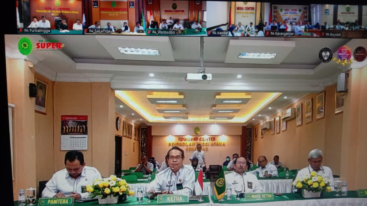 Ketua Pengadilan Tinggi Agama Semarang dalam sambutannya menyampaikan pertemuan zoom untuk penilaian triwulan merupakan bagian dari proses pengelolaan kinerja dan peningkatan kualitas layanan yang dilakukan secara rutin. Semoga dapat bermanfaat bagi satker diwilayah PTA Semarang, ujar beliau. Penggunaan semua Aplikasi yang ada sekarang merupakan bagian dari upaya modernisasi dan digitalisasi proses evaluasi kinerja di lingkungan peradilan, memungkinkan efisiensi dan transparansi dalam pelaksanaan monitoring. Semua aplikasi ini memberikan kemudahan bagi satuan kerja untuk menginput dan memonitor kinerja mereka secara real-time, sehingga setiap unit kerja dapat lebih cepat merespons dan menindaklanjuti evaluasi dari Badan Peradilan Agama.