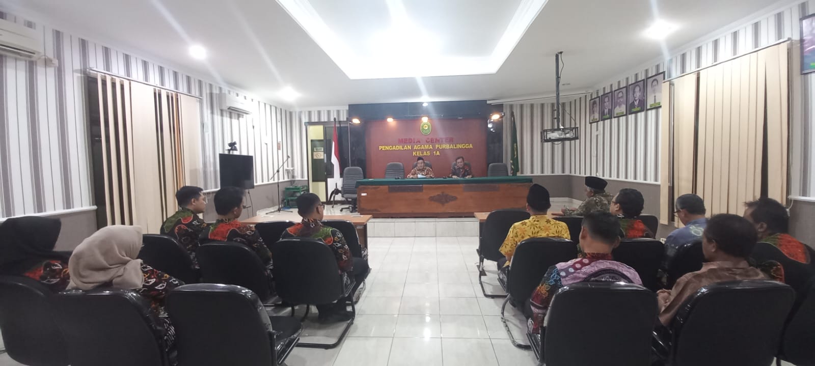 Rapat Monitoring dan Evaluasi (Monev) Kinerja Kepaniteraan Pengadilan Agama Purbalingga bulan Juli tahun 2025 kembali diselenggarakan di Ruang Media Center Pengadilan Agama Purbalingga pada 07 Agustus 2025 pukul 14.00 WIB. Rapat dipimpin oleh Panitera Pengadilan Agama Purbalingga, Bapak Drs. Fauzan dengan dimoderatori Bapak Achamd Rathomi, S.H. serta dihadiri oleh para Panmud beserta para staf kepaniteraan lainnya.