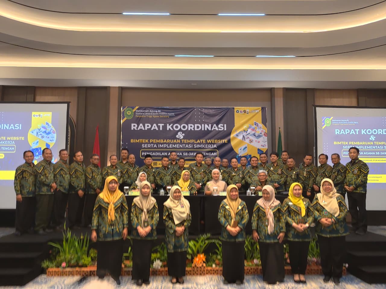 Pengadilan Agama Purbalingga ikut berpartisipasi dalam kegiatan Rapat Koordinasi dan Bimbingan Teknis Pembaruan Template Website serta Implementasi Aplikasi SIMKERJA Pengadilan Agama se-Jawa Tengah, yang diselenggarakan oleh Pengadilan Tinggi Agama Semarang pada 27–28 November 2025 bertempat di Hotel Anaya Azana Boutique Tawangmangu, Karanganyar.