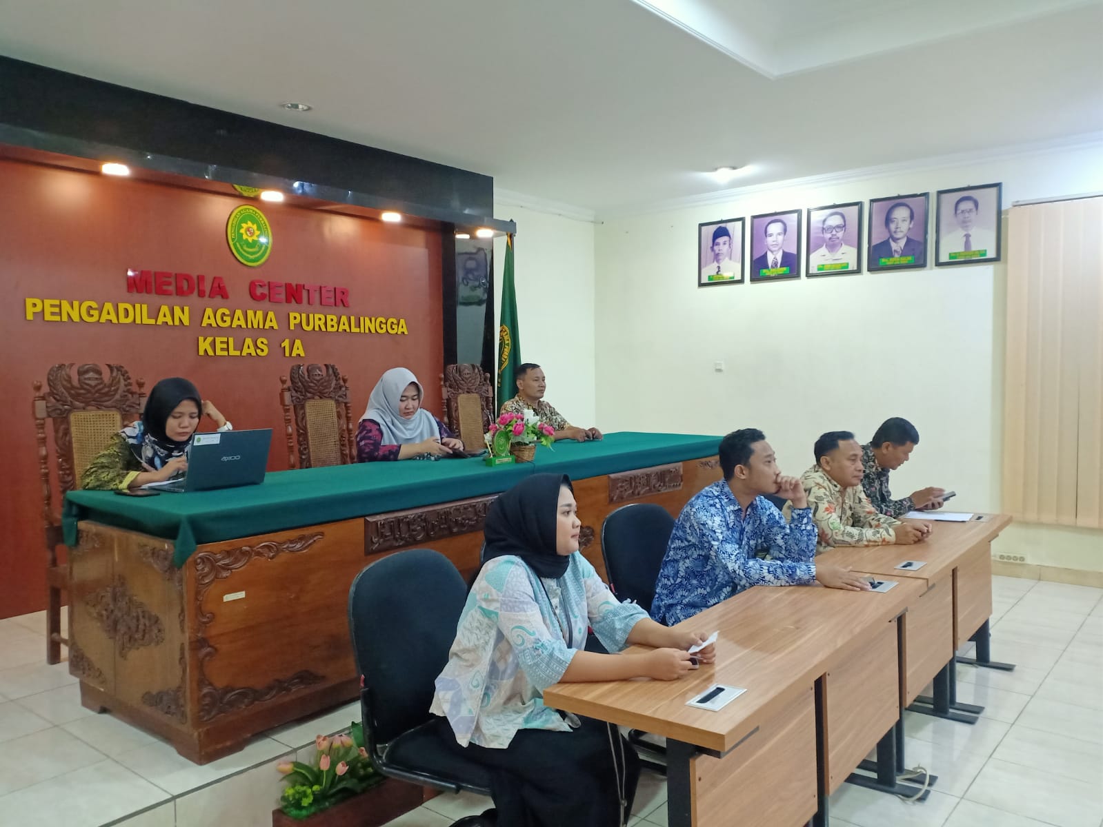 Pada hari Kamis (02/03) pukul 09.00 WIB dilaksanakan Sosialisasi SE KEMENPAN-RB No. 4 Tahun 2023 dan Evaluasi Pembangunan Zona Integritas. Kegiatan ini dihadiri oleh Ketua Pengadilan Tinggi Agama dan Ketua Pengadilan Agama di seluruh Indonesia berdasarkan surat edaran Direktorat Jenderal Badan Peradilan Agama Republik Indonesia nomor 716/DjA./OT.00/2/2023 tanggal 27 Februari 2023. Ketua Pengadilan Agama Purbalingga Drs. Jakfaroni, S.H., Panitera Drs. Fauzan, dan Sekretaris Rizal Zaenal Abidin, S.H. menghadiri acara ini diruang Media Center PA Purbalingga. Sosialisasi ini selain untuk menjalin silaturahmi juga berfungsi mempererat sinergi kinerja antar satuan kerja dan Direktorat Jenderal Badan Peradilan Agama.