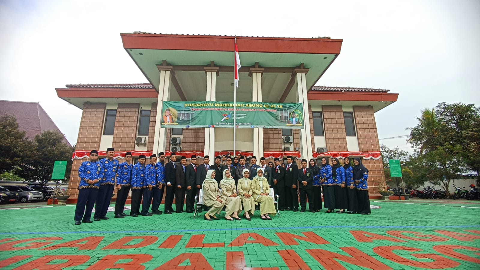 Aparatur Pengadilan Agama Purbalingga mengikuti upacara peringatan hari ulang tahun Republik Indonesia ke – 78 pada Kamis (17/08) pukul 07.00 WIB. Acara ini digelar di halaman depan Pengadilan Agama Purbalingga berdasarkan surat undangan ketua Pengadilan Agama Purbalingga nomor 2063/KPA.W11-A23/HM3.1.1/VIII/2023 tanggal 14 Agustus 2023. Turut hadir dalam upacara Dharma Yukti Karini Purbalingga serta 11 Mahasiswa UIN Prof. K.H. Saifuddin Zuhri Purwokerto.