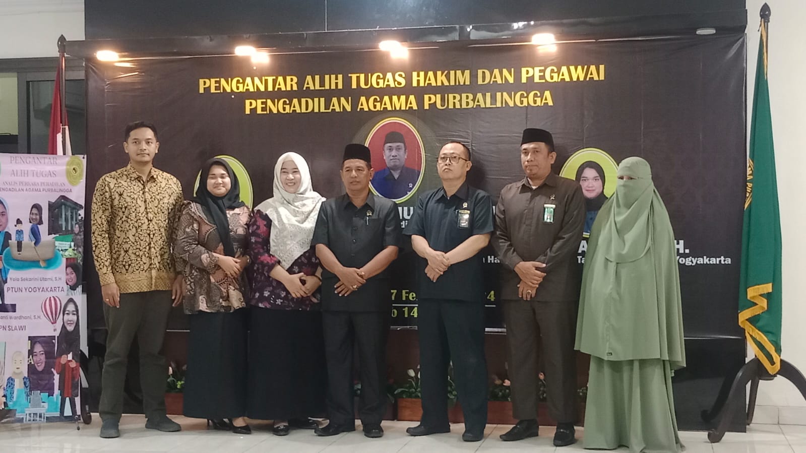 Bertempat di Media Center, Rabu (07/02) pukul 14.00 WIB telah dilaksanakan acara pengantar alih tugas Hakim Baso Abbas Mulyadi, S.H.I. menjadi wakil ketua Pengadilan Agama Buol dan pegawai PA Purbalingga yaitu Rizkia Santi Wardhani, S.H., menjadi calon hakim Pengadilan Negeri Slawi serta Yola Sekarini, S.H. menjadi calon hakim PTUN Yogyakarta. Acara ini diselenggarakan berdasarkan surat undangan Ketua Pengadilan Agama Purbalingga nomor : 397/KPA.W11-A23/KP4.1.3/II/2024 tanggal 05 Februari 2024 tentang pengantar alih tugas pegawai. Kegiatan ini dihadiri oleh seluruh Aparatur Pengadilan Agama Purbalingga dan Dharmayukti Karini Purbalingga. Adapun tujuan dilakukan mutasi adalah untuk menciptakan keseimbangan antar tenaga kerja dengan komposisi pekerjaan atau jabatan, untuk memperluas atau menambah pengetahuan pegawai, untuk menghilangkan rasa bosan/jenuh tehadap pekerjaan, untuk memberikan dorongan agar pegawai mau berupaya meningkatkan karir yang lebih tinggi. Diharapkan dengan adanya mutasi ini akan membawa kemajuan bagi Pengadilan Agama Purbalingga