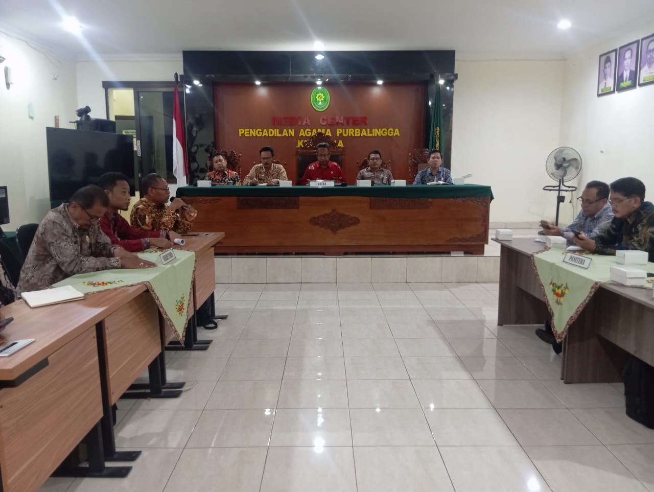 Bertempat di Media Center Pengadilan Agama Purbalingga, Ketua, Panitera, dan Sekretaris Pengadilan Agama se Koordinator wilayah Banyumas menyelenggarakan rapat koordinasi yang dilaksanakan pada hari Kamis tanggal 09 Januari 2025 pukul 09.00 WIB. Rapat tersebut bertujuan untuk meningkatkan kinerja jajaran pegawai baik itu Kepaniteraan maupun Kesekretariatan Pengadilan Agama se koorwil Banyumas. Salah satunya adalah maksimalisasi laporan kinerja instansi pemerintah. Agenda tersebut di moderatori oleh Alwin, S.Ag., M.H. selaku Ketua Pengadilan Agama Purbalingga dan diketuai oleh Ketua Pengadilan Agama Cilacap Drs. Ahmad Juaeni, M.H.