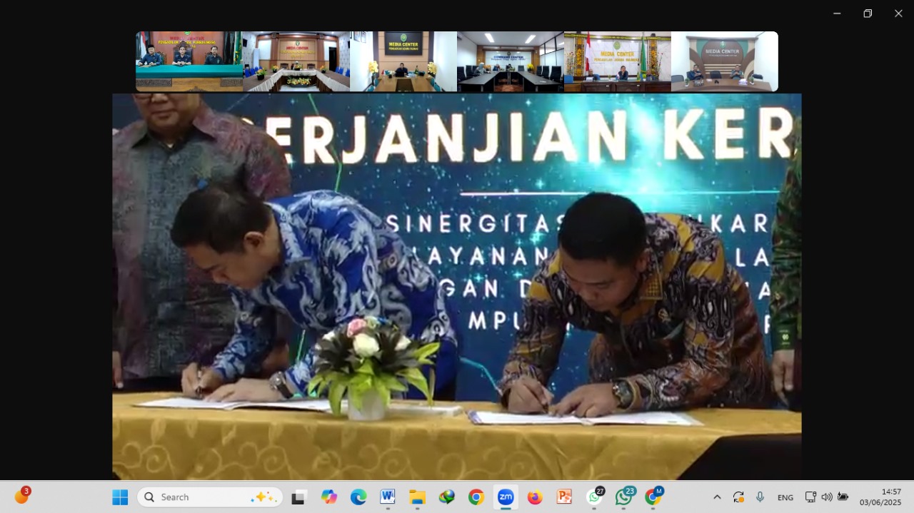 Ketua PA Purbalingga bersama jajaran dari Kepaniteraan dan Kesekretariatan mengikuti kegiatan ini secara virtual dari Media Center PA Purbalingga, sebagai wujud dukungan terhadap inisiatif kolaboratif antarinstansi demi terciptanya layanan peradilan yang inklusif dan berkeadilan.